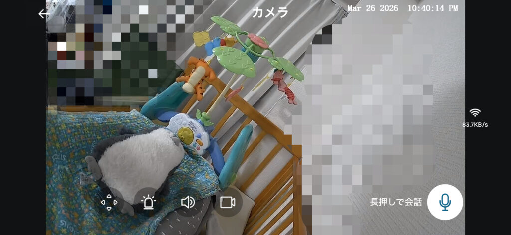 フレームレートは15fpsでタイムラグは1~2秒ありますが、赤ちゃんの見守り用と考えると全く問題ないです。