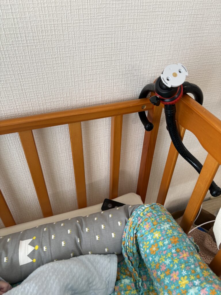 また私はこのようなたこ足型の三脚を購入したので、ベビーベットに取り付けることもできました。
