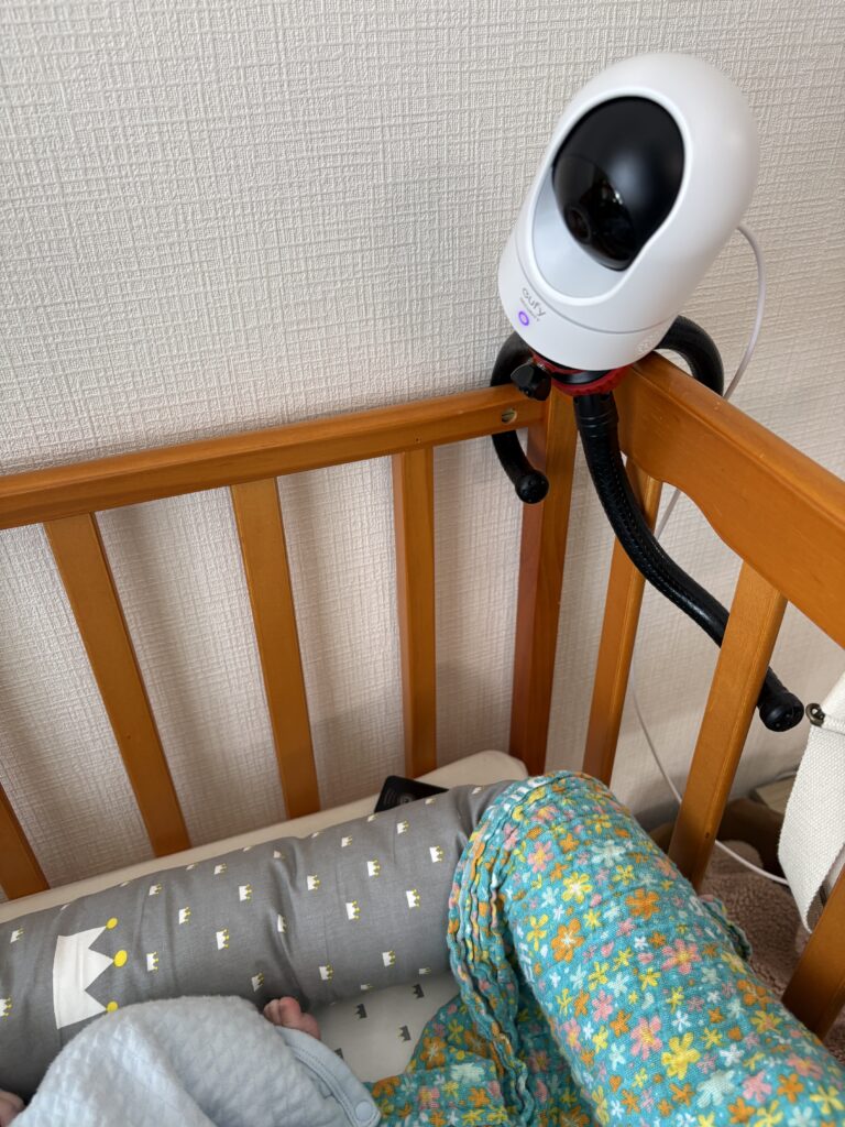 どれくらい寝てるかなと記録をつけるときに映像から振り返ったり、自分が寝ている間ぐずったり泣いたりしていないかあとから確認できるので助かっています。