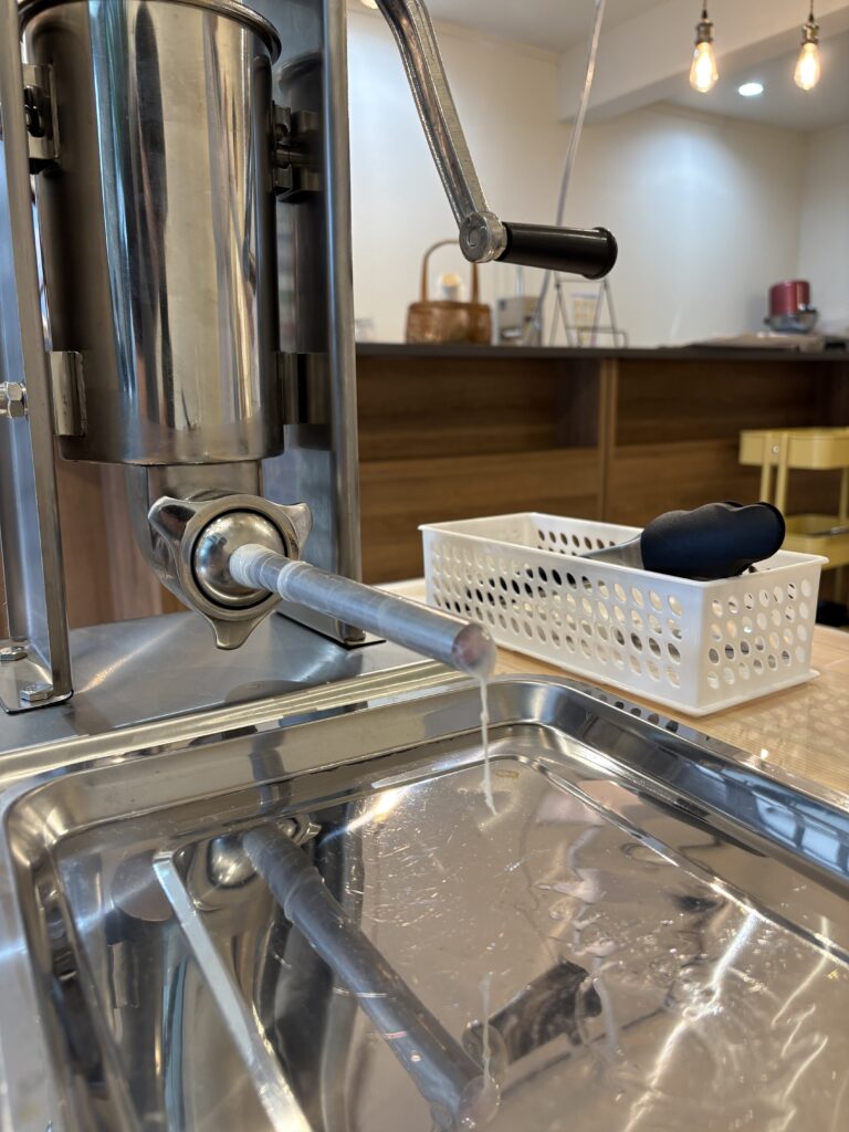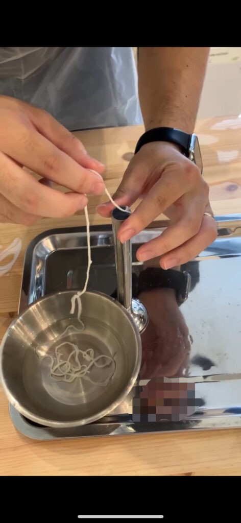 太さを均一にするため、指で挟みながら調整するのですが意外に難しいので集中しました。