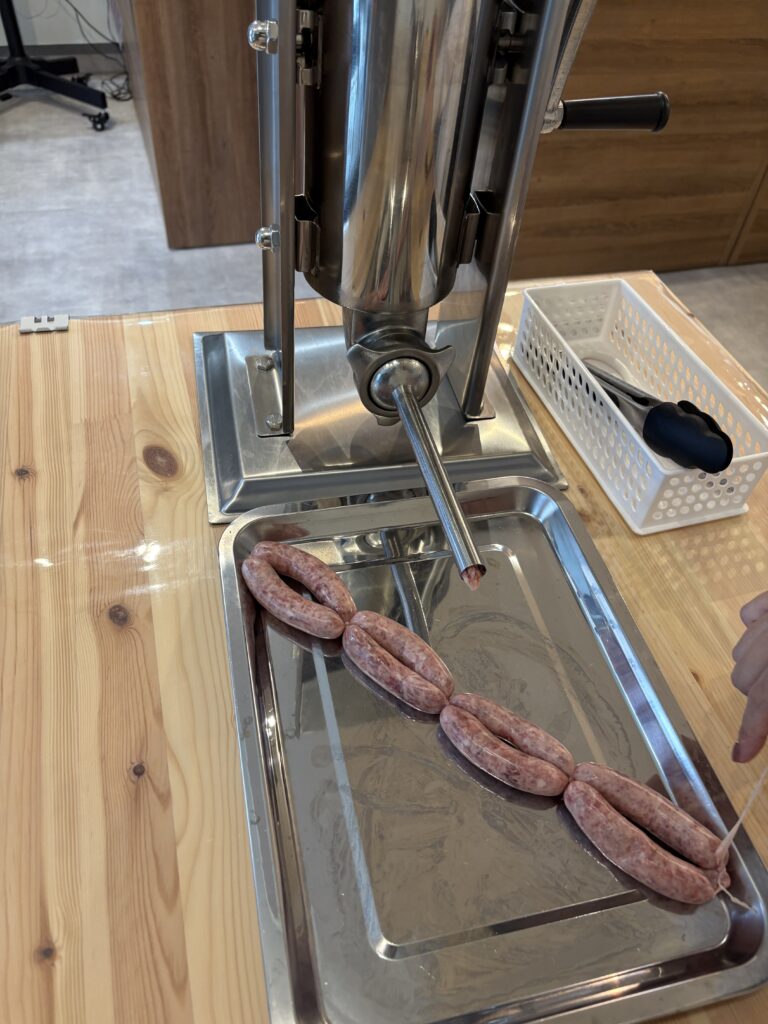 大まかな流れとしては、説明を聞いてソーセージ作りを実践。出来立てのソーセージを直ぐに焼いて食べるという感じです。