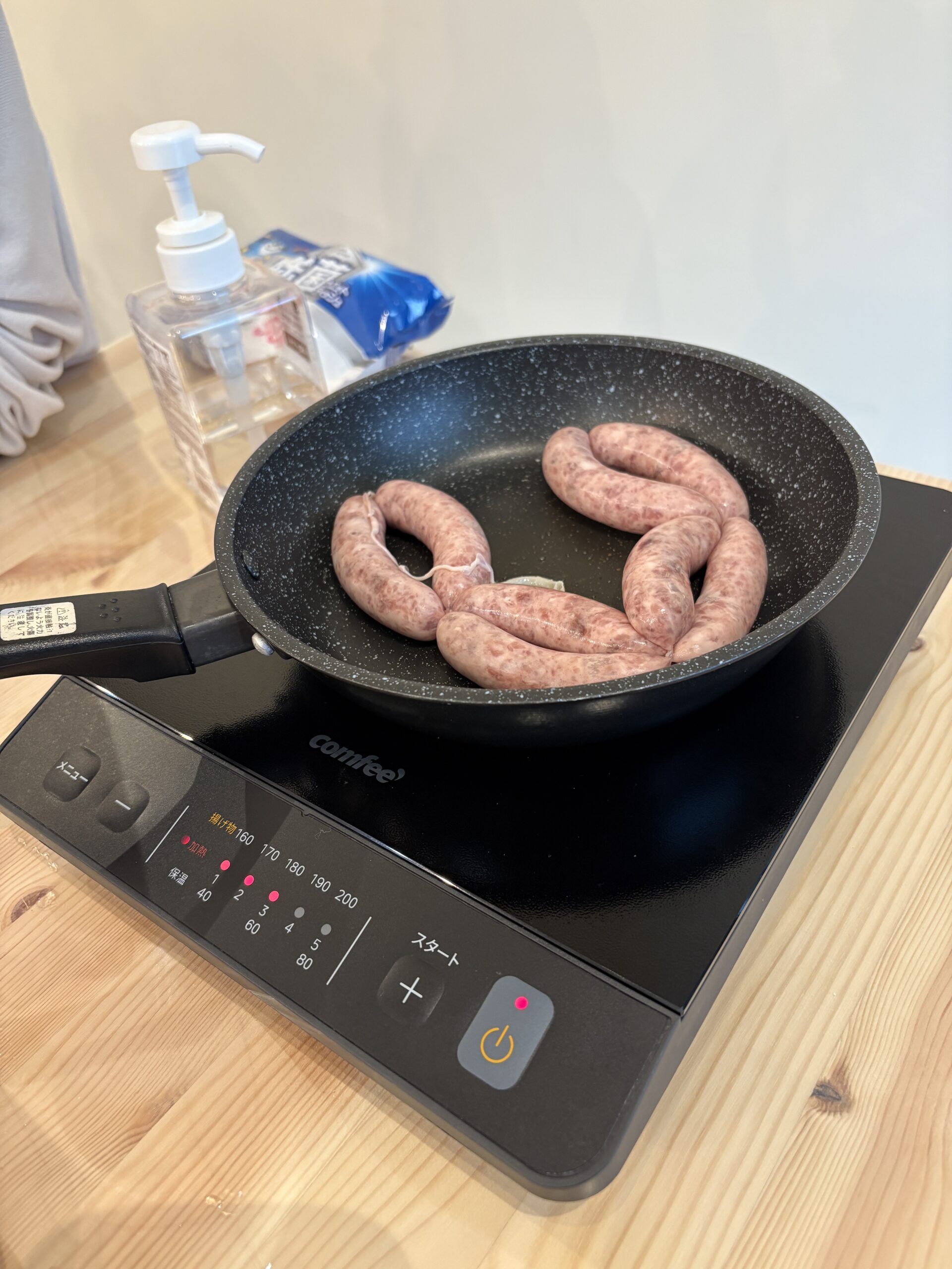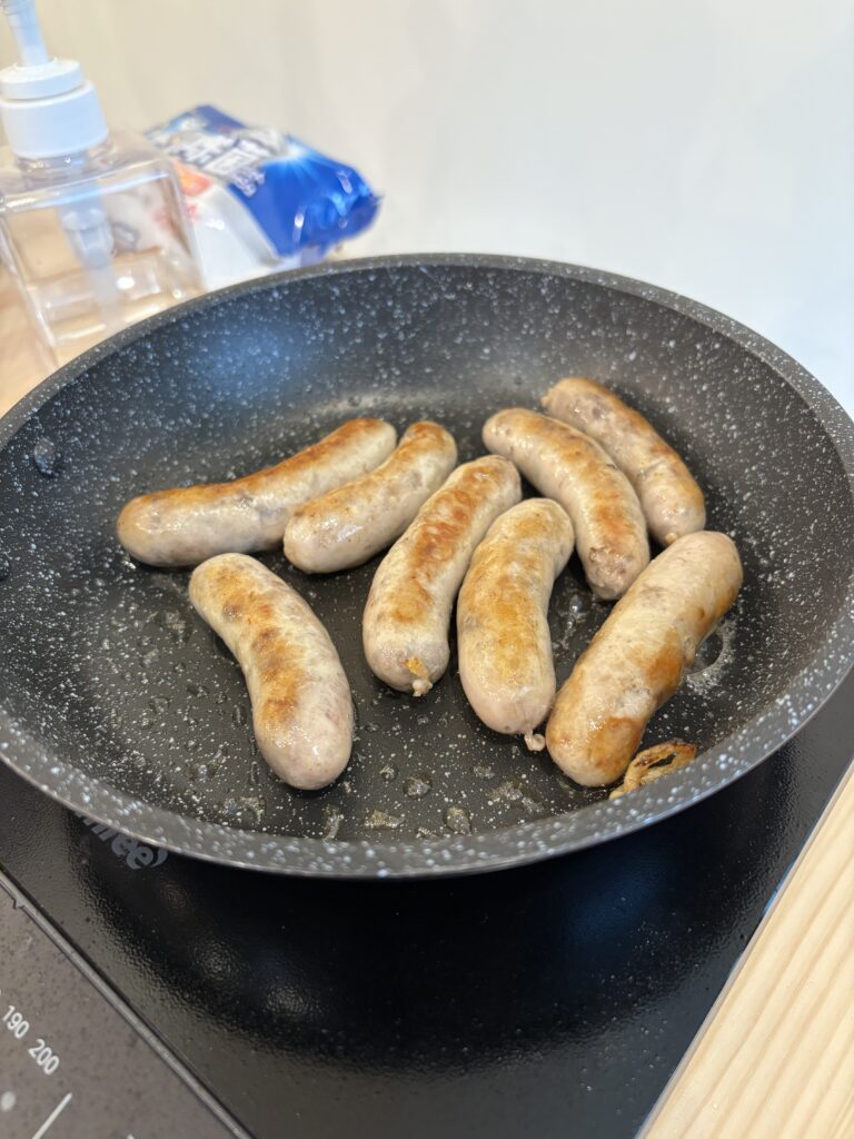 10分ほどフライパンで焼いていきますが、途中お店の方がソーセージの内部の温度を測ってくれるので生焼けで食べてしまう心配は無いので安心しました。