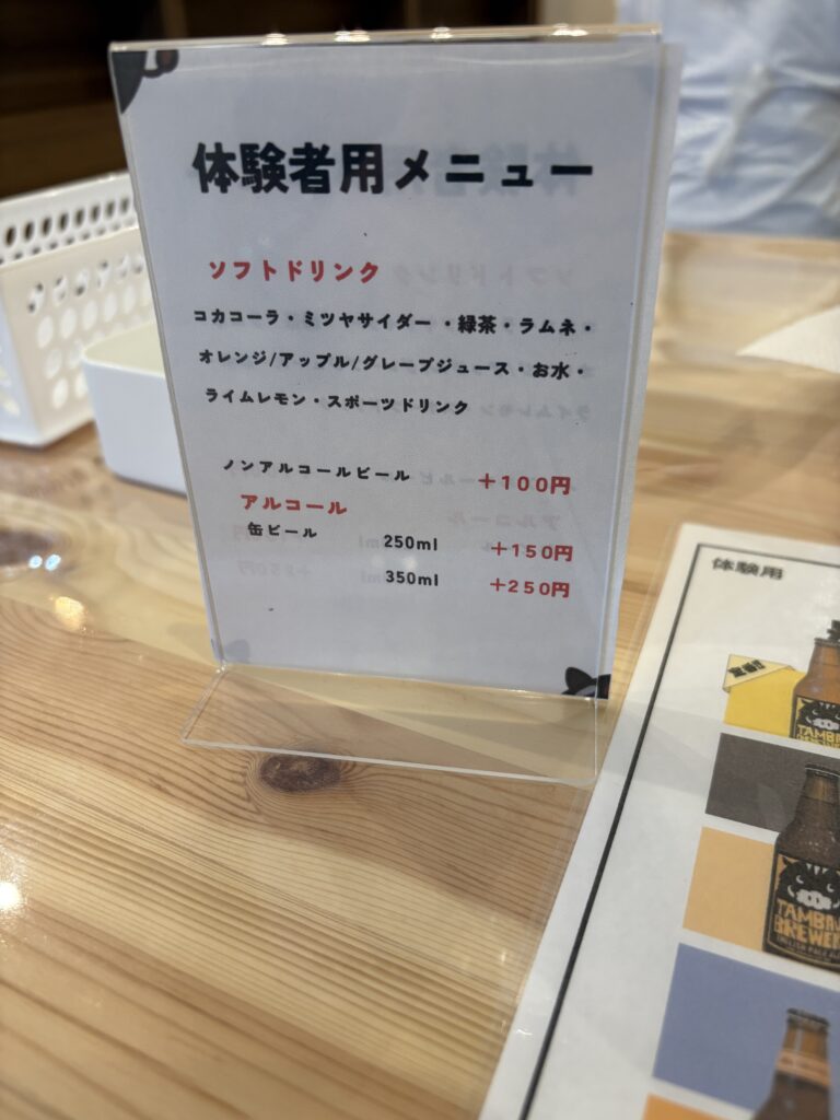 食べる前にドリンクを貰えます。ドリンク代は体験料に基本含まれているそうです。(一部アルコール等は追加料金いるかも)