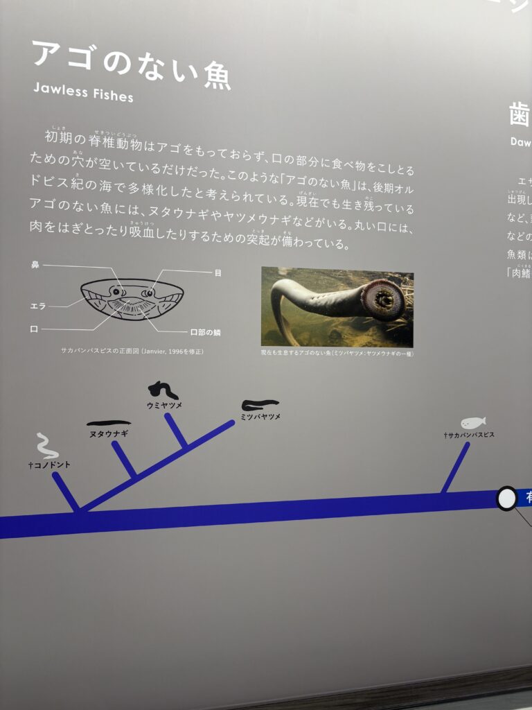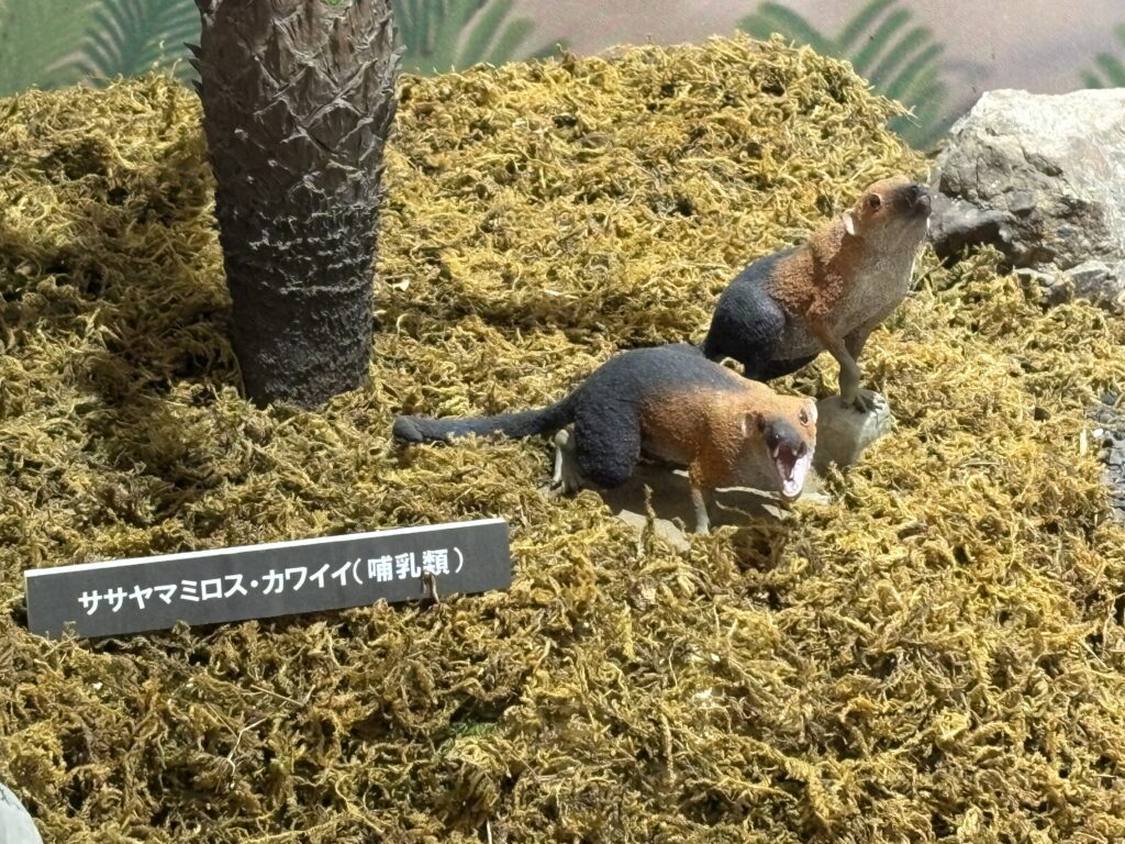 他に、恐竜を始めとする詳しい進化の過程があります。リニューアルしただけあった、一時ネットで話題になったサカバンバスピスの絵もこっそりあったりします。かわいいですね。